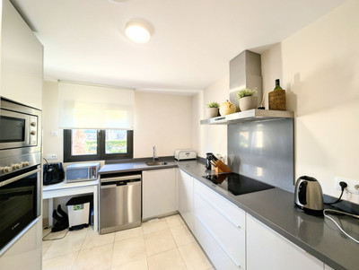 This beautifully furnished 2-bedroom apartment is located in the prestigious complex of Hoyo 19, within the exclusive Los Flamingos Golf Resort in Benahavis. The apartment offers a perfect blend of comfort and luxury, featuring hot and cold air conditioning, elegant marble floors, and a spacious master bedroom with an en-suite bathroom and fitted wardrobes. The fully fitted kitchen is ideal for preparing meals, and the property includes secure underground parking with direct lift access, providing convenience and privacy.