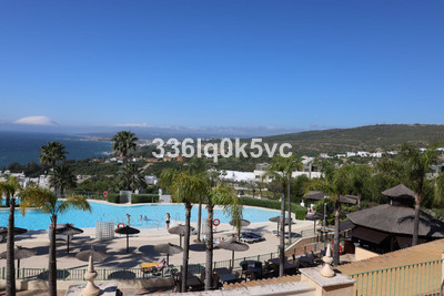 Nice and cosy apartment for sale in Manilva. The apartment has two bedrooms, two bathrooms, equipped kitchen and living room. It is situated in an authentic Andalusian holiday village, with two pools, a restaurant, bar and views to the street of Gibraltar. In the urbanisation you can find a space for children, a space to play football, basketball and handball. It is located 500m from the sea. A rental contract is in place. The complex is gated, providing security, which is an attractive feature for potential tenants and buyers. And the harbour and beach of Sotogrande just 5 minutes away by car.