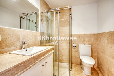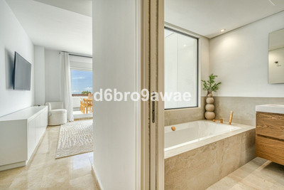 • Master bedroom: with en-suite bathroom featuring a bathtub, separate shower, double washbasin, and toilet. This room provides direct access to the terrace and stunning sea views.