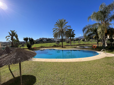 This well positioned 4 bedroom 3 bathroom first floor apartment is spacious, bright and situated in an ideal location. Close to schools, beaches and convenient shops and restaurants. Hacienda del Golf is a community driven urbanisation. With families and long term residence making it a complex that is alive all year round. Known for its excellent facilities with a well cared for community. Secure and well presented, this apartment also has the convenience for a private underground parking and a corner storage unit that gives extra space. The first floor apartment, reachable also by lift is well presented, with a fully fitted semi open plan kitchen onto the lounge and dining room. The terraces are very impressive and wrap around the apartment, ensuring you can walk out onto the terrace from the bedrooms and of course the lounge. All bedrooms are generous in size, with fitted wardrobes and the master suite with a bath and a shower. In good condition and well presented . Front line views onto Mijas Golf and the Sierra de Mijas mountain range as a back drop. The beach is reachable under 10 minutes, Malaga airport is a quick 25 minute drive. The apartment is a short distance from 2 championship golf courses in Mijas Golf, Los Lagos and Los Olivos and only a 10 minute drive from Fuengirola or La Cala de Mijas and their beautiful beaches and public transport on your door step ! Well worth a visit – As always viewings at your convenience.