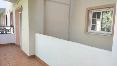 This flat, which is accessible for people with reduced mobility, is located on the first floor and faces northeast. The property has two generously proportioned bedrooms, both of which feature ample fitted wardrobe space. One of the bedrooms is equipped with an en-suite bathroom. The property's living room is generously proportioned, features a fireplace, and is well-lit. It opens onto the terrace, offering views of the gardens and the communal swimming pool.