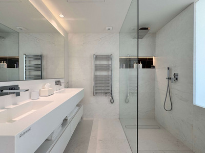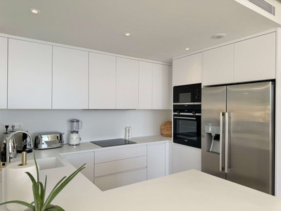 This spacious apartment with three bedrooms and two bathrooms is tastefully decorated in a warm, contemporary style. Large windows let natural light flow through the living areas and create a seamless connection with the large terrace offering sea views.