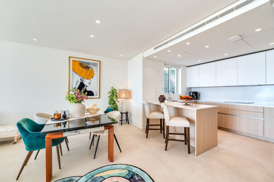 High-End Kitchen: The open-plan kitchen is equipped with premium appliances, ideal for culinary enthusiasts.