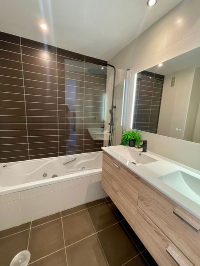 The master bedroom features an en-suite bathroom with a double sink and a whirlpool tub.