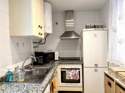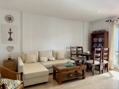 For sale: Bright apartment located in the peaceful, gated urbanization of Vistalmar Duquesa Norte. The property offers a comfortable one-bedroom layout with a private en-suite bathroom, a spacious living room, a fully equipped kitchen, and a covered terrace with partial sea and mountain views.