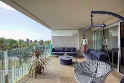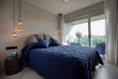 Stunning fully furnished 3-bedroom apartment located on the middle floor of a modern beachside complex in San Pedro de Alcántara. This east-facing home features a spacious open-plan living and dining area leading to a large covered terrace, ideal for relaxing or entertaining. The kitchen is fully equipped with premium appliances and includes a separate utility room.