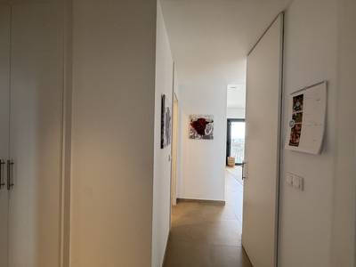 The apartment features a modern minimalist design with soft tones and high-quality materials. Upon entry, a hallway with a mirror and a practical hidden wardrobe leads into a spacious 40 m² living-dining area, which opens into the fully equipped Balay kitchen. From every room, the views are simply stunning, with two floor-to-ceiling windows with triple glazing (valued at €10,000 each) allowing one to enjoy the beauty of the surroundings.