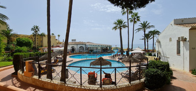 This studio apartment, with a touristic rental license, was recently renovated and is located in a frontline beach urbanization in Calahonda, Mijas Costa. Walking distance to all amenities and the beach. It is a great holiday property which also rents out very good due to the excellent location of the urbanization. Within the urbanization you find several restaurants and shops. The community offers a tennis court, large gardens and a community pool. A beautiful studio with a terrace facing south and some sea views. Besides the large living area, you find also a small kitchen and a separate bathroom. About 30 minutes from the Málaga airport and city, as well as only 20 minutes to Marbella.