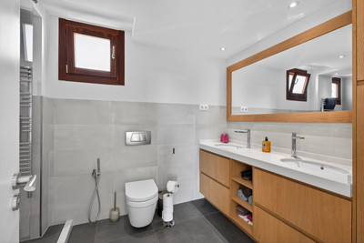 The kitchen is of excellent quality, from Schmidt, and the apartment is filled with natural light. It has direct access to a south-facing terrace, allowing you to enjoy both sun and shade throughout the day. The master bedroom also has access to its own private terrace.