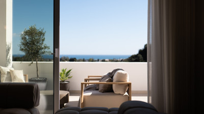 The heart of the home is the bright open-plan living space, designed for both comfort and entertaining. Large openings lead out to a generous terrace, where you can enjoy breathtaking panoramic views of both the sea and the mountains in a truly tranquil environment.