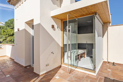 Located in the exclusive and tranquil gated community of Los Almendros, this outstanding south-facing duplex penthouse offers breathtaking panoramic views over the Mediterranean Sea and surrounding mountains. Just a short drive from San Pedro de Alcántara, beaches, and all amenities, the property combines privacy, luxury, and convenience in one of the most sought-after areas of Benahavís .