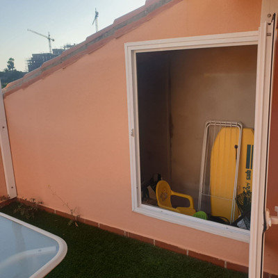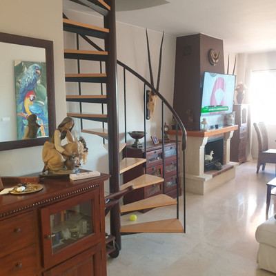 Duplex penthouse located in a rapidly expanding area between Fuengirola and Cala de Mijas (Chaparral-Calaburras golf course area), approximately 300 meters from Playamarina beach and El Charcón. It has 3 bedrooms, 2 bathrooms (one en suite with a hydromassage bathtub and separate shower), two living rooms, one on each floor, a fireplace, and an open-plan kitchen with state-of-the-art furniture. Marble floors and bathroom tiling. Recently renovated hot and cold air conditioning. Two large terraces, one per floor, equipped with sun awnings. The communal areas include gardens and a swimming pool for adults and children. The price includes a garage space and a large storage room