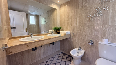 This superb duplex penthouse apartment in Elviria has the most wonderful open and panoramic Sea Views from everywhere you look. The gated community features very well maintained communal garden and pool areas, and this apartment also benefits from a garage space and enormous store room. The property has large rooms throughout, and the largest of the 4 terraces has those spectacular, uninterrupted views across the Med to Africa. Both the living room and kitchen are lovely and spacious, and on the same level is one of the 2 large en suite bedrooms. Upstairs we find the master ensuite with 2 terrace, one east facing, and one west. Really priced to sell, and offers are invited for a fast sale, viewings are highly recommended!