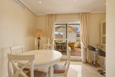 Exclusive corner penthouse in Dunas Green with a total of 175 m² of terraces. The main terrace faces southwest, enjoying morning sun thanks to the corner position and sun for most of the day, while the rooftop terrace gets sun all day. The property features 3 bedrooms, 2 bathrooms, and 1 guest toilet. Two covered parking spaces located next to each other. Well maintained and sold furnished. The community offers a beautiful pool, two padel courts, and spacious, well kept green areas, especially around the pool. Just a 15 minute walk to the sea.