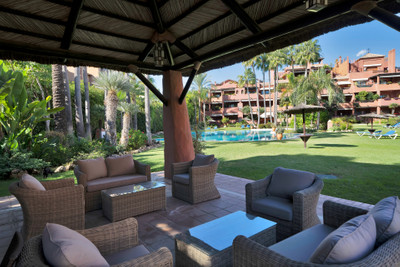 Situated beside the prestigious Guadalmina Baja, this impressive triplex penthouse is a true jewel of the Costa del Sol — perfectly blending the sophistication of Andalusian architecture, Moorish influences, and a touch of contemporary romanticism.