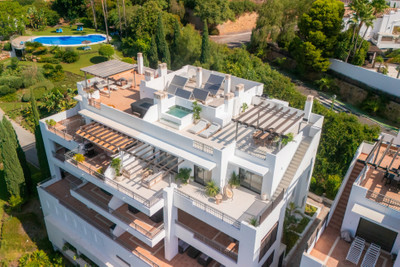 Set high above the lush landscape of La Quinta in Benahavís, this exceptional duplex penthouse offers a unique blend of luxury, privacy, and jaw-dropping panoramic views. Just a 7-minute drive from Puerto Banús and even closer to the top three golf courses in Nueva Andalucía’s prestigious Golf Valley, this home is a haven for golf lovers and those seeking the ultimate Costa del Sol lifestyle.