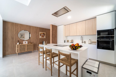 Penthouse ZenMar is a modern duplex penthouse set over two levels in a quiet area of Cabopino. It offers three spacious bedrooms and three modern bathrooms with two ensuite. The property includes a bright open plan kitchen with island and large glass windows that fill the living space with light. There is also an office on the upper floor that can be converted into a fourth bedroom. The solarium level features a private pool and sundeck with panoramic sea views.