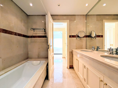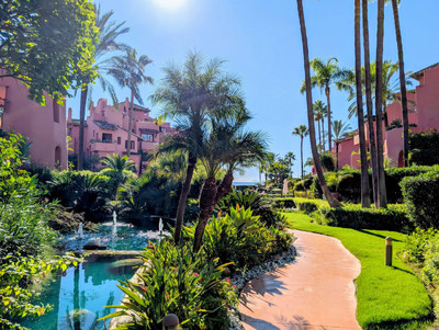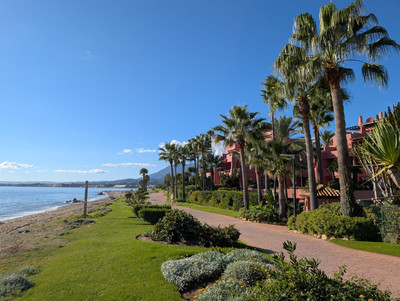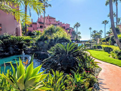 NEW on the market! Stunning Penthouse duplex in exclusive luxury beachfront complex on the New Golden Mile, East Estepona. The property benefits from prominent position within the urbanisation, with breathtaking views towards the Mediterranean sea, Sierra Bermeja mountains and amazing landscaped gardens with lakes, fountains, swimming pools and lush vegetation.