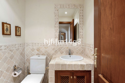 Ascending to the upper level, the property reveals a truly impressive master suite. This expansive space includes a luxurious en-suite bathroom and access to a private terrace, offering an exclusive sanctuary with elevated views across Nueva Andalucía and beyond.