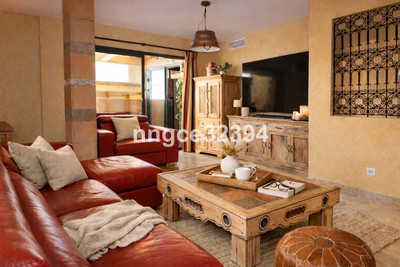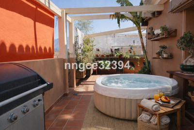 This charming 225 m² duplex ático is located in a secure residential building within a peaceful, pueblo-style community in San Pedro de Alcántara, offering generous living space, authentic rustic character, and beautiful open views of La Concha from both levels.