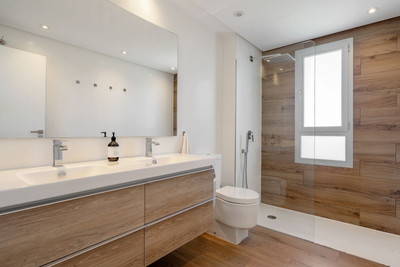 As you step inside, prepare to be captivated by the luxury qualities. The spacious living room leads to a fantastic south facing terrace with spectacular views to the port and sea. On the same level you will find 3 bedrooms and 2 bathrooms (one en suite) and the luxury kitchen with an integrated wine cooler ensures culinary excellence and functionality. A modern inside staircase brings you up to the spacious roof terrace, where you will feel like being on a cruise ship. Impressive views of the marina and the sea are waiting for you.