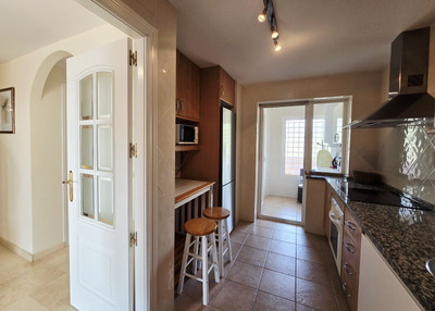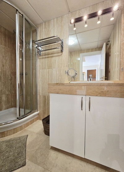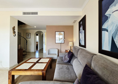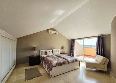 This bright two-storey penthouse is in good condition and comprises a large living and dining room with access to a spacious terrace. The kitchen is located at the rear, as is the second bedroom. A complete family bathroom is also on this level.