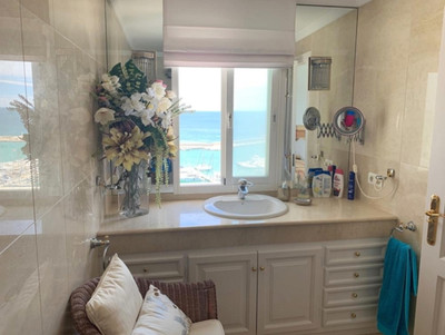 Impressive duplex penthouse of 160 m2 in front of the beach with magnificent views of the sea and the port of Estepona. It is located in a secure and well-maintained urbanization with beautiful gardens, parks, two swimming pools and parking. The urbanization has maximum security with a guard that controls who accesses it. There is air conditioning, heating and elevator. The price is worth it. You will not find an equal apartment in the whole building.