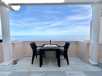 This stunning luxury duplex penthouse is located in the beautiful area of Arroyo Vaquero, Estepona West, Estepona, Malaga. Situated in a front line beach position, this property offers breathtaking sea views and direct access to the beach. With a built area of 185m², this spacious penthouse includes 2 bedrooms and 2 bathrooms.