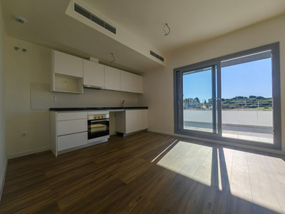 The penthouse features two generous bedrooms and two bathrooms, including a master suite with en-suite bathroom, finished to a high standard throughout. The bright open-plan kitchen, dining, and living area flows seamlessly onto an impressive south-facing L-shaped terrace, ideal for outdoor dining, entertaining, or simply relaxing while enjoying panoramic views of the Costa del Sol coastline, surrounding mountains, and the Mediterranean Sea.