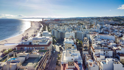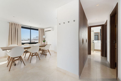 A very special penthouse situated 2nd line to the beach right in the centre of Estepona. The penthouse and terraces occupy the whole of the 6th floor on this building making it one of a kind and very private. The good size living and dining room have access straight out onto the southern part of the terrace with sea views but here comes the beauty, from here you can practically walk around the whole penthouse giving you amazing views in all directions especially over the old town towards the Sierra Bermeja Mountain range. The size of the terrace makes it possible to maximize your outdoor living and at the same time have a change of scenrio when you so desire. This is a truely unique property and has to be seen to be fully appreciated. Please note that the apartment is appr. 100m² constructed plus 187m² of terrace.