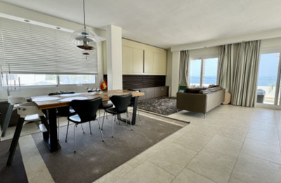 Very rare opportunity to purchase a reformed and fully furnished 3 bed penthouses in one of the most iconic front line beach developments on the coast. This stunning apartment was fully reformed and modernized a few years ago and is offered for sale fully furnished and ready to move into. The property is situated on the front line to the beach and has unobstructed views to the Mediterranean and North Africa. Distributed on one floor there are 3 bedrooms and 2 bathrooms plus a guest toilet and large terraces overlooking the sea.