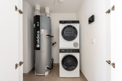 This complex, defined by clean and organic architectural lines, blends seamlessly with its natural surroundings. It offers beautifully designed communal areas where every detail has been carefully considered, including a swimming pool, SPA area, gym, changing rooms, as well as a coworking space and a communal kitchen.