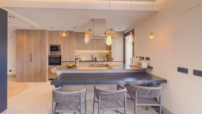 The penthouse is fully furnished with a stylish and sophisticated interior, combining elegant design with maximum comfort. Thanks to its corner orientation and expansive floor-to-ceiling windows, the property benefits from abundant natural light and an open, airy atmosphere, with spectacular views from almost every angle.