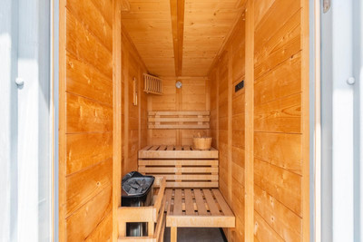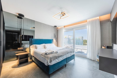 Penthouse – dupex built in 2018, stands out for its elegant contemporary style, has a total of three bedrooms, (two of them on the ground floor), two bathrooms, living room with open kitchen and terrace on the main floor and large terrace on the upper floor with jacuzzi, sauna…etc. From the terrace you can enjoy wonderful views of the sea, golf course, lake and mountains.
