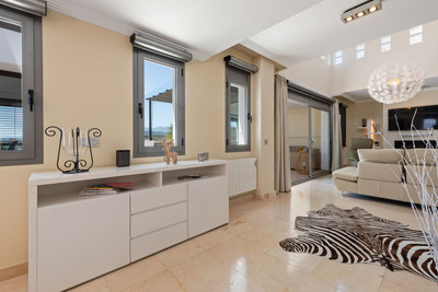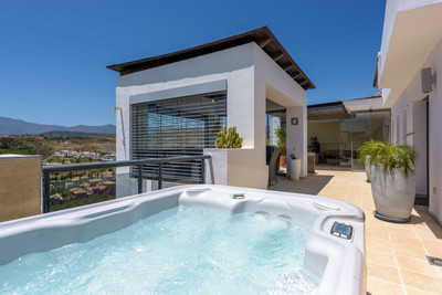 Located in the sought-after Los Flamingos resort near Cancelada, this stylish and spacious penthouse offers a harmonious blend of natural light, stunning views, and comfort. Originally designed with three bedrooms and three bathrooms, the apartment is currently configured as a generous two-bedroom, two-bathroom home. Thanks to its smart layout, it can easily be converted back to the original design—perfect for those in need of additional space for guests, a home office, or family.