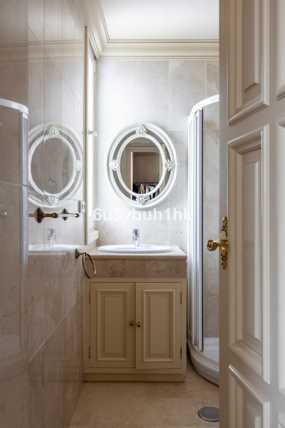 A refined dining area leads to a second terrace overlooking the immaculately landscaped gardens of the urbanization. The property also boasts a large independent fully fitted kitchen, with space for an informal dining area and a dedicated laundry area. Elegant marble flooring throughout the entire property adds a timeless sense of sophistication and continuity to the interior spaces.