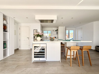 Indulge in refined coastal living in this elegant, newly renovated penthouse, set within a peaceful Andalusian community in the prestigious Marbella East, Las Chapas. Designed for comfort and sophistication, this residence offers breathtaking sea and mountain views, generous outdoor spaces, and a serene atmosphere just minutes from Marbella’s finest beaches.