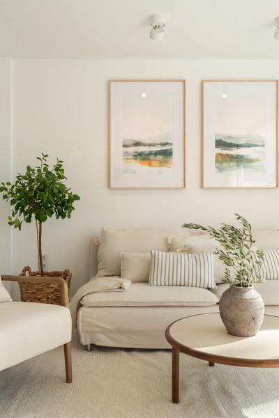 As you step inside, you are greeted by an open, light-filled space where the living room and terrace flow seamlessly together, thanks to bespoke floor-to-ceiling windows from Cortizo. From here, enjoy breathtaking panoramic views of the Mediterranean Sea accompanied by the peaceful sound of birdsong.
