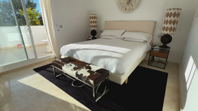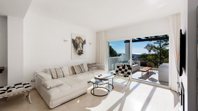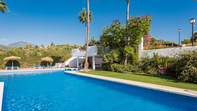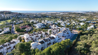 Situated in a quiet residential area of Nueva Andalucia's Golf Valley, this luxurious and sought-after gated development offers immaculate grounds, a large communal pool and a superb Southerly orientation as well as stunning panoramic sea views.