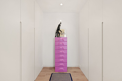 Under the staircase leading to the solarium is a handy storage room.