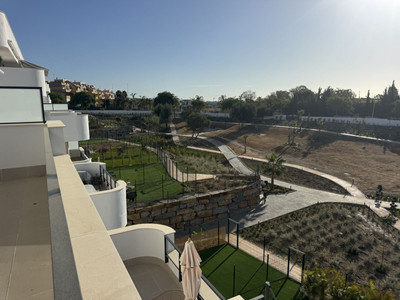 New residential complex with modern flats and penthouses close to golf in Estepona, located in a gated community, adjacent to La Resina Golf Club and a 5-minute drive to the beach.
