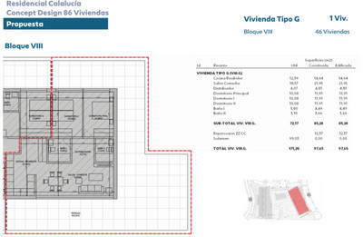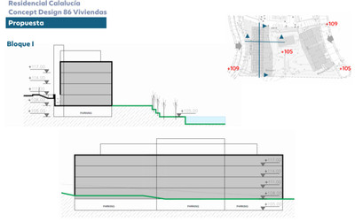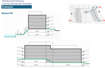 • Preliminary project for two apartment blocks with 7,017 m² built above ground.
