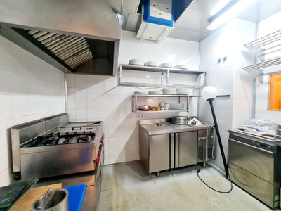 The fully equipped professional kitchen includes an independent extraction system and a high-capacity industrial hood, complying with all current regulations. Additional storage space and a customer restroom are also available within the premises.