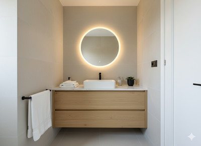The sleeping area is located on the upper floor, with three bedrooms, all with built-in wardrobes. The master bedroom features a walk-in closet, en-suite bathroom, and access to a private 20 m² terrace with direct views of the golf course. The other two bedrooms share a full bathroom equipped with a bathtub.