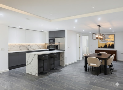 In the basement, accessible from the house terrace or the front patio, there is an independent guest apartment, consisting of a spacious open-plan room with kitchen-dining and living area, one bedroom, a walk-in closet, and a full bathroom. This space ensures privacy for guests or family members, although it can also be adapted for any other use according to the needs of the new owners.