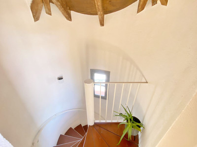 On the second floor, there is currently a beautiful and inviting living room with a fireplace, which leads to a fantastic private terrace offering plenty of privacy and perfect for enjoying the sun all day long. Facing south, it boasts lovely open views over the village of La Virginia and the sea in the background.