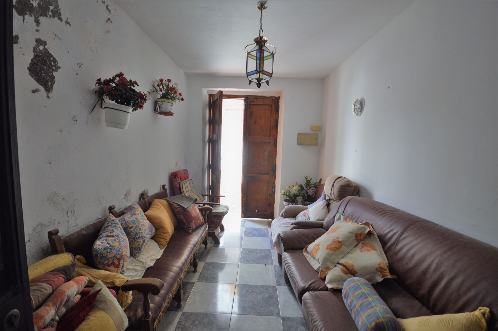 The house is divided into 3 floors; The main floor consists of an Andalusian-style entrance hall, 1 very spacious living-dining room with high ceilings, 1 bathroom and 1 very bright fully equipped kitchen with views of the patio of the so-called Cofradia La pollinica. The 2nd floor is very spacious and consists of 3 large rooms, 1 bathroom and 1 terrace.