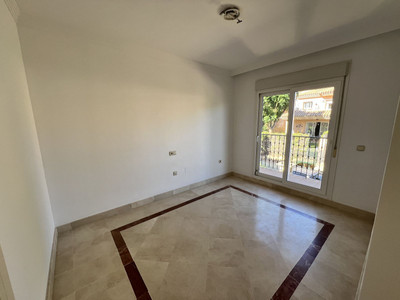 On the ground floor, there is a spacious living-dining area with great natural light, an independent kitchen with the possibility of being opened up to the living room with a minor renovation, a guest toilet, and a separate utility/laundry room. The property features centralized air conditioning and marble flooring.