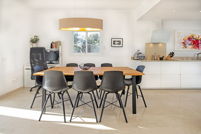 As you arrive, you are greeted by a spacious private courtyard, complete with a covered seating area—the perfect spot to relax or entertain. Step inside and you’ll discover a bright and airy open-plan living area seamlessly combining the lounge, dining room, and a modern fully-equipped kitchen. This elegant space flows naturally onto a sun-drenched terrace, ideal for al fresco dining while enjoying the views.