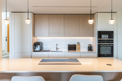 At the heart of the home is a bright open-plan living and dining area. Large windows lead directly to the terrace and private garden, allowing you to fully enjoy natural light and the Mediterranean climate all year round.